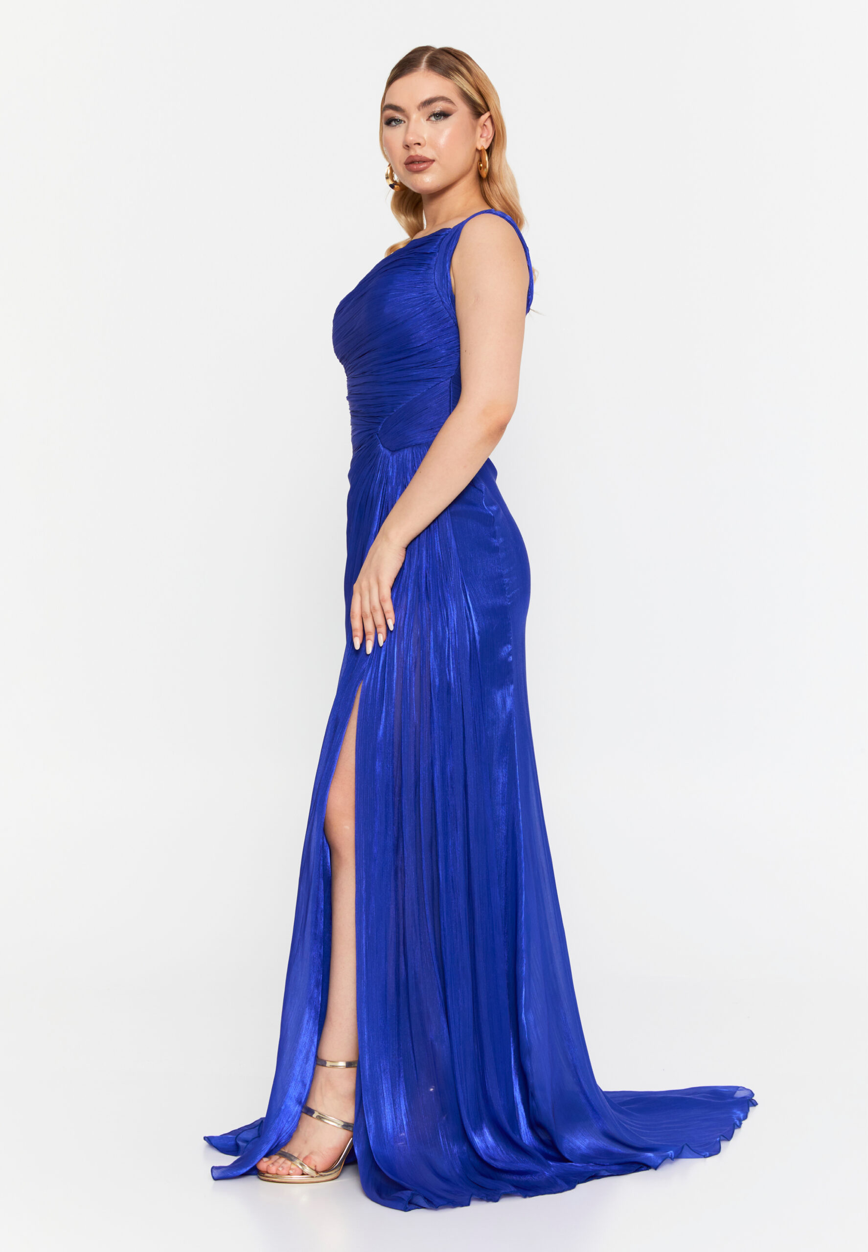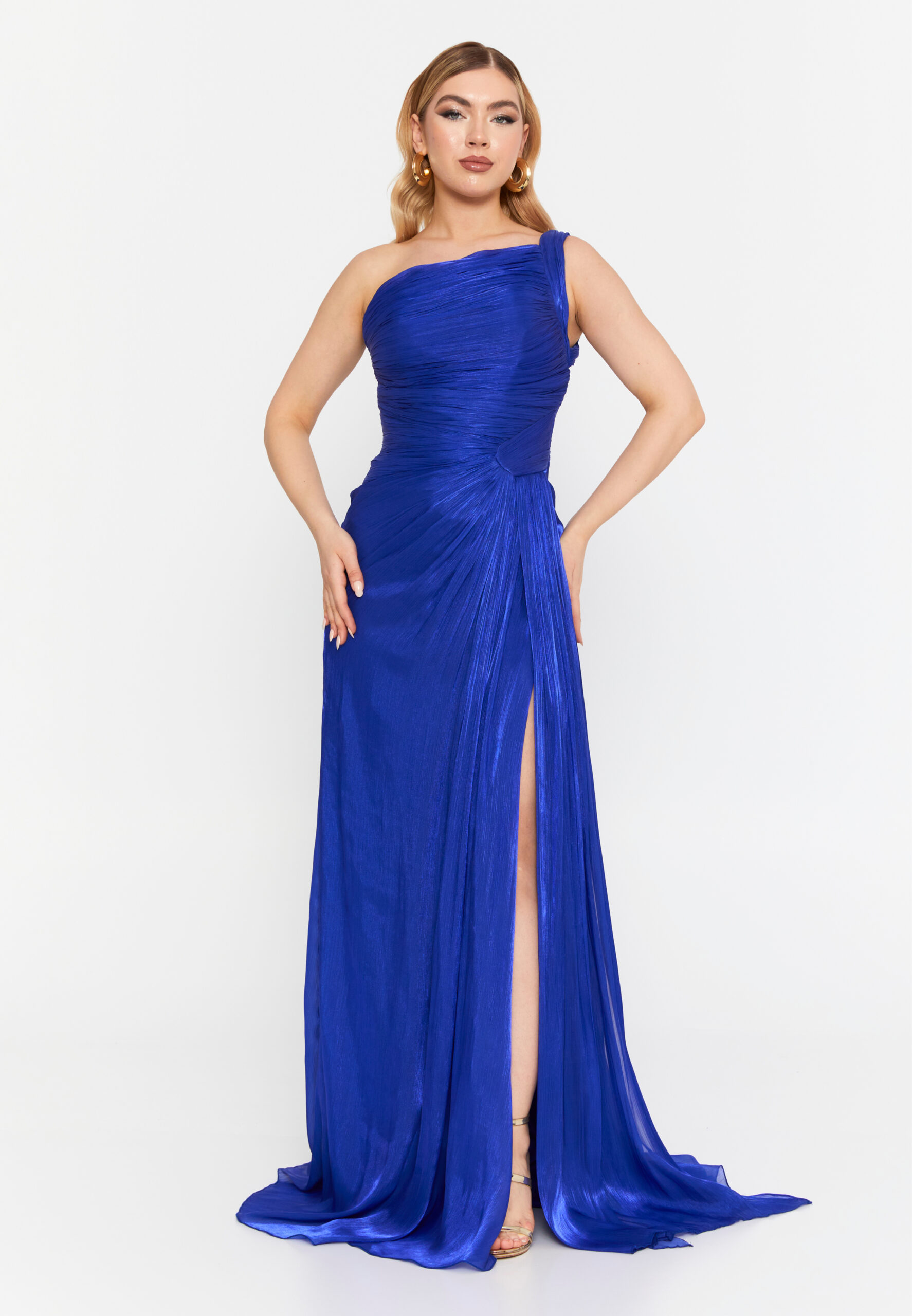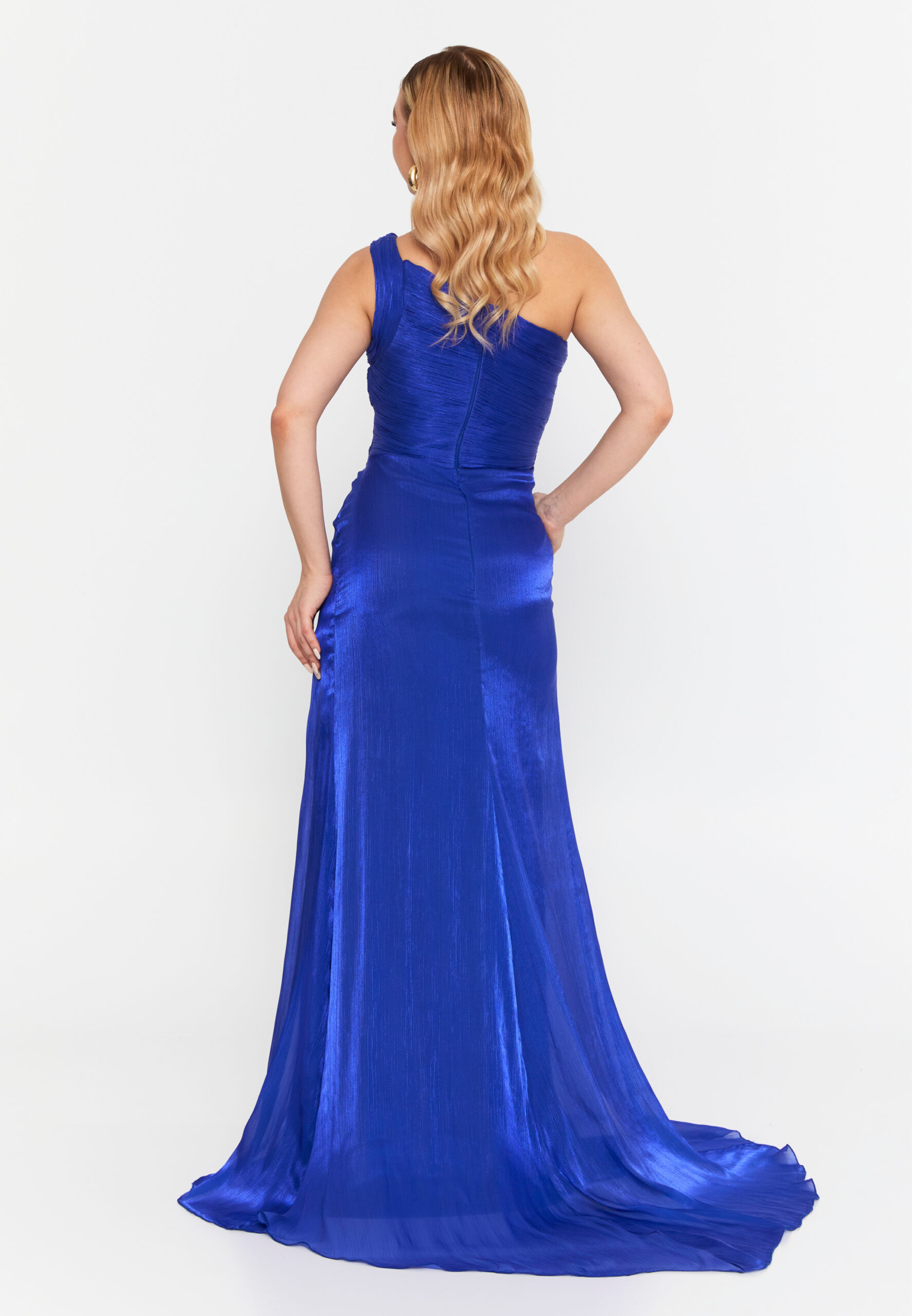 Type: One-Shoulder Pleated Evening Dress